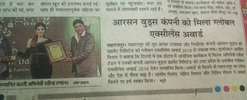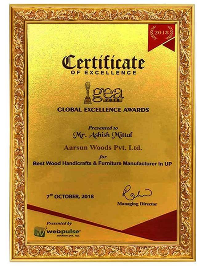 Global Excellence Award 2019 awarded by Ms. Madhuri Dixit and Global Excellence Award 2018 by Ms. Raveena Tandon, are the Awards we have received for top company in handicraft wood furniture. However our real pleasure is from the amazing reviews that we receive from our clients from across the globe and we have a long list of reviews and testimonials for our work.