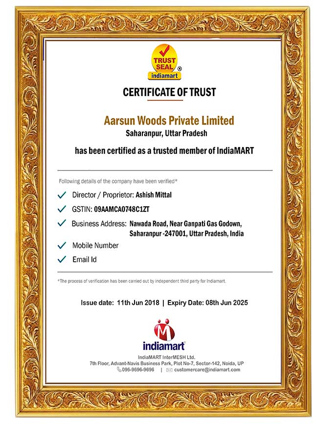 Aarsun is an Internationally registered trademark of Aarsun Woods Private Limited. We reserve the right to use Aarsun and we do not authorize anyone to use this trademark unless authorized, to produce, sell or use our branded products across the global.