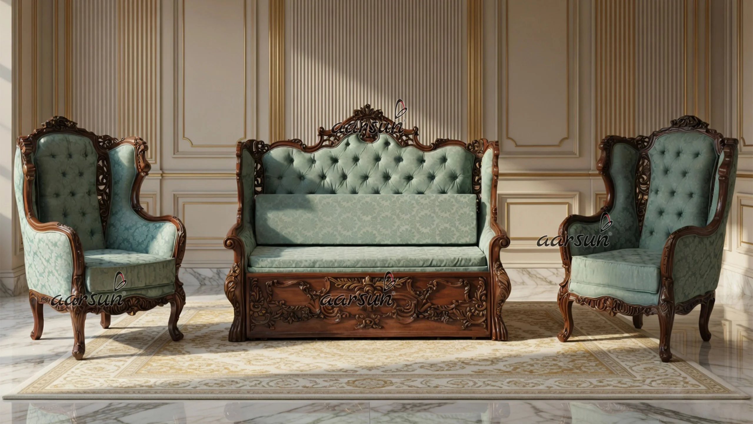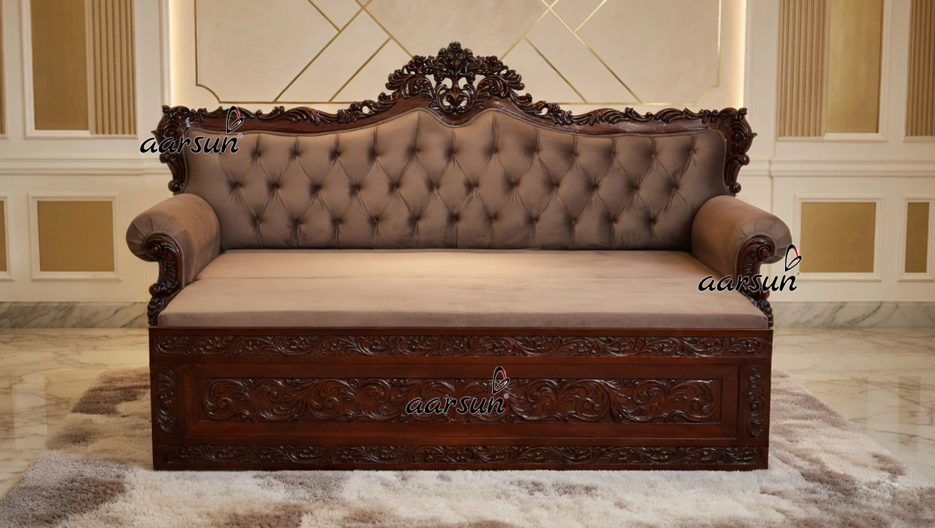 Space- Saving With Classical Carving – Sofa Cum Bed