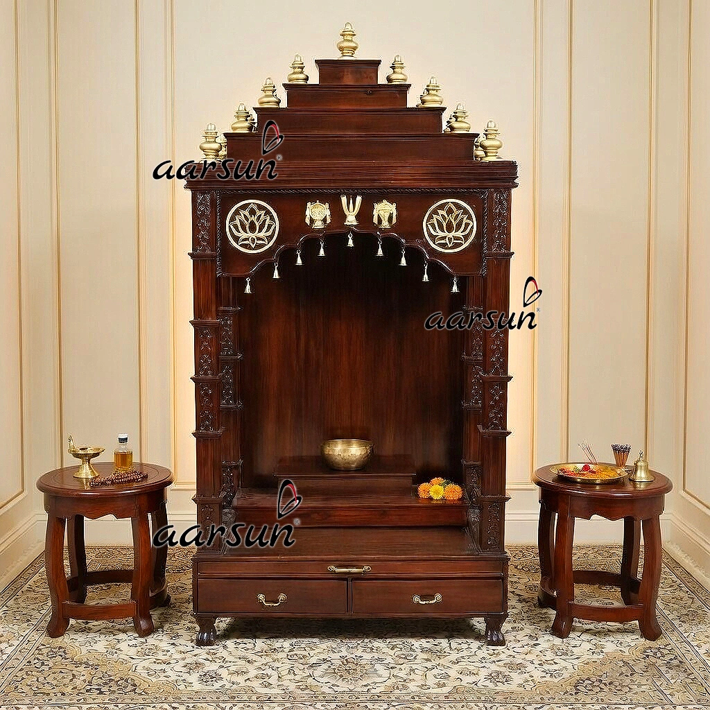Handmade Wooden Pooja Mandap with Intricate Carving