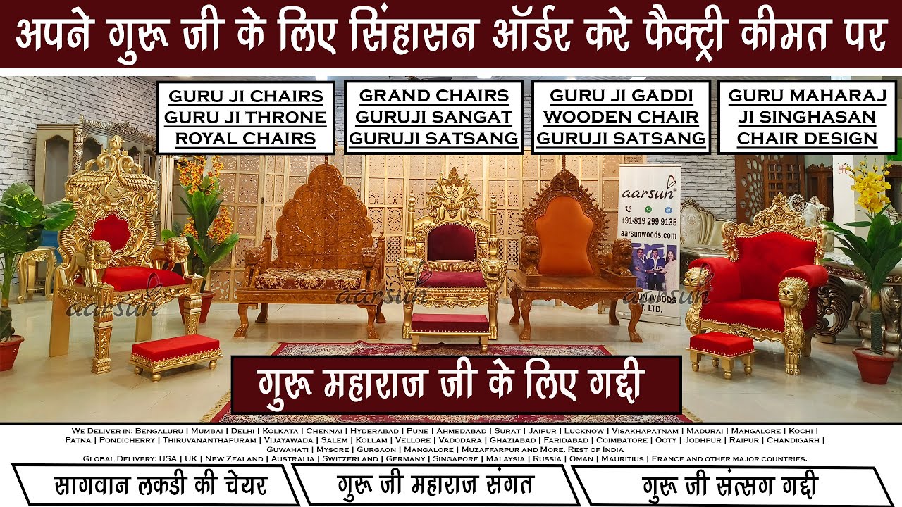 Aarsun is the most trusted brand in manufacturing quality wooden furniture. We make customized Guru Ji Chairs as per your requirements because we are experts in manufacturing “Choice Wala Furniture”. We deliver PAN INDIA as well as in other countries too. We provide door delivery. We have already delivered many Guru Ji Chairs and are liked by our clients.