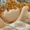 The beautiful armchairs are very well cushioned from the back and on the armrests to provide comfort. The antique gold finish gives luxurious look to the overall set. You can also personalize this set according to your requirements. We provide customization , you only have to share measurements , design and theme. We will curate your masterpiece according to your customization.