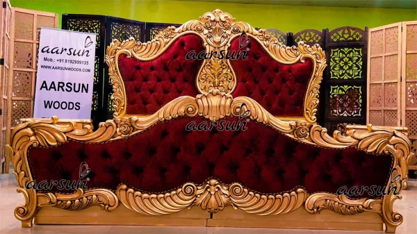 Similar to the requirements successfully met on every order before, this spectacular Large Bedroom Set is one of the masterpieces we were able to make just like the client needed. Earlier, this design was polished in Teak finish and had a different fabric. Even the side tables were of a different style and design.