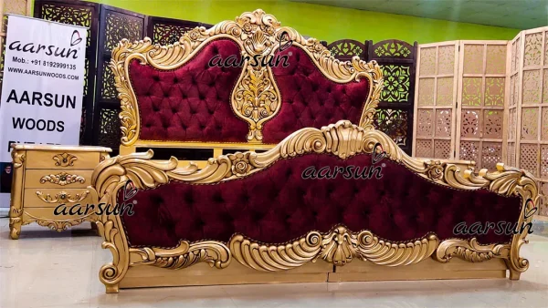 The Custom Made Large Bedroom Set has a Huge Back matching the footboard and has a comfortable contemporary fabric upholstery. The Gold color is by far the most liked color paint across the globe. The USP of the unit is its beautiful carving on a thick wood-base. In fact. This is Royal yet the gold has a subtlety to it. The King-Size Bed comes with a top-load hydraulic storage box for easy opening and closing.