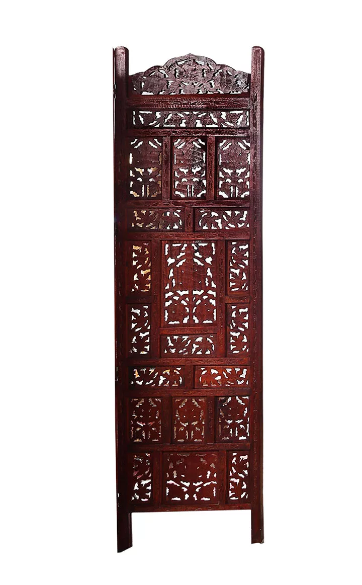 Aarsun brings you this Antique Partition Screen made from fine quality wood that gives an elegant and traditional look (matte finish) to your living room. Antique Partition Screen Consists of 3/4 Panels each of 72″ Height and 20″Width. These stylish dividers separates the living room area from the rest of the house or can be used for separating Puja Space from the rest of the house. Add a classy feel to your living room.