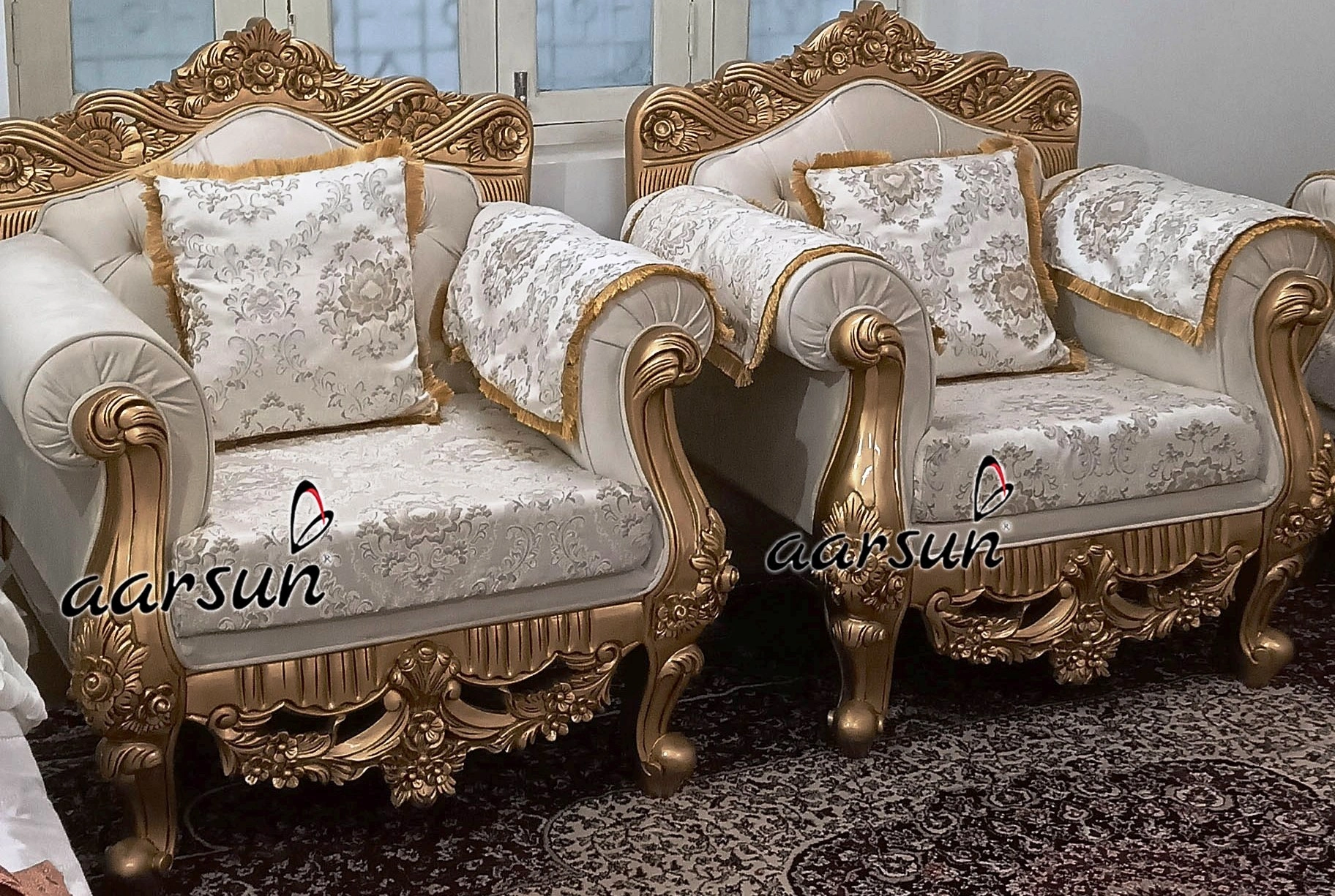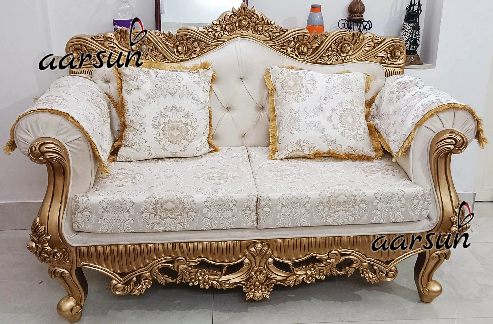 Beautiful Wooden Sofa Set with Royal White & Gold Finish