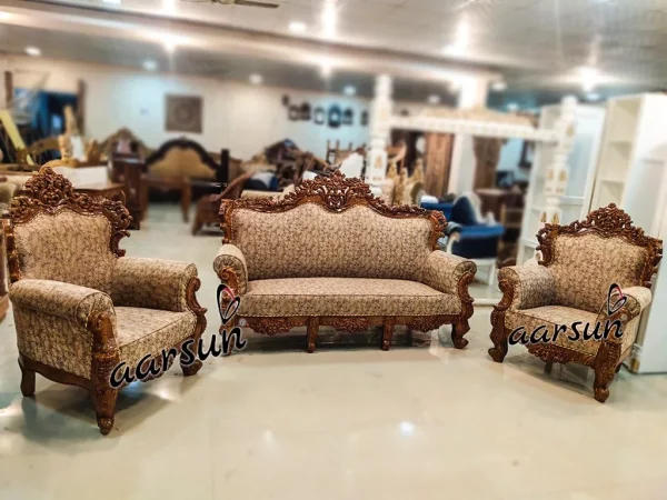 Aarsun India’s top brand in premium and Royal furniture industry. Amazing Handicraft artwork with years of experience makes Aarsun stand distinguished in the Royal Victorian furniture industry. This wooden sofa in 5 seat is one of the top design in living room sets.