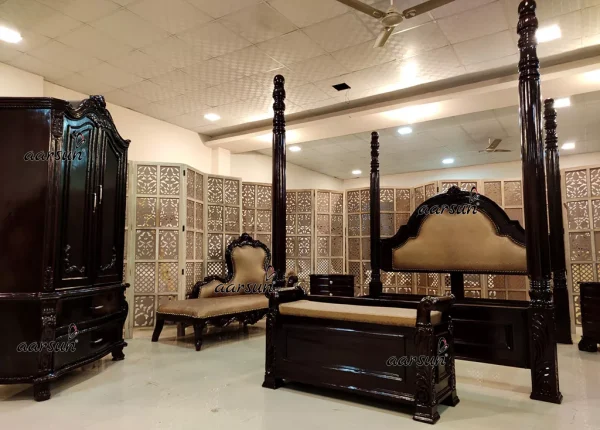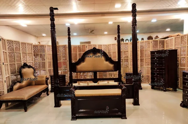 Aarsun Woods provides a wide range of handcrafted bedroom furniture designs that transform your home into a palace. Experience Luxury at home with our latest Collection of Bedroom Furniture Sets that are handmade by our artisans in a premium quality wood. The royal luxurious bedroom sets are highly customizable and each unit is unique being a handmade furniture piece.