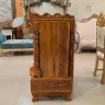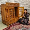 Let’s explore Aarsun’s Classic Teak wood Temple for your puja room. From top to bottom, this wooden temple is adorned with a beautiful floral leafing design. This temple has doors with solid brass bells that are considered auspicious. The bottom part is with two pull-out drawers. The top part is with an elephant floral running design. The garbhagriha space has two removable steps in the centre. The temple has a bhog tray for making offerings. This temple is perfect for compact spaces and small puja rooms. The temple is made of solid teak wood, ensuring durability.