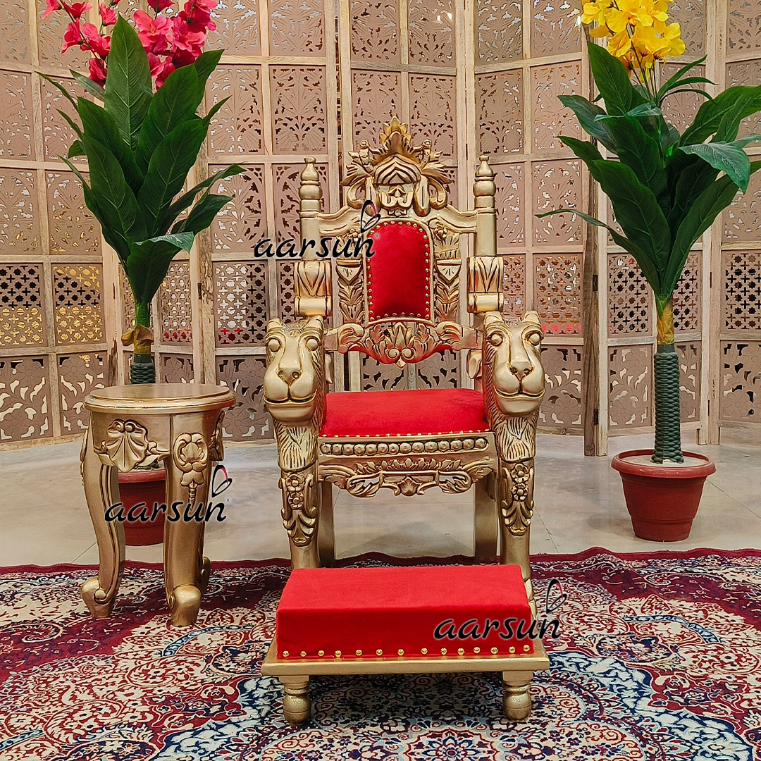 Handcrafted Wooden Guru Singhasan with Antique Gold