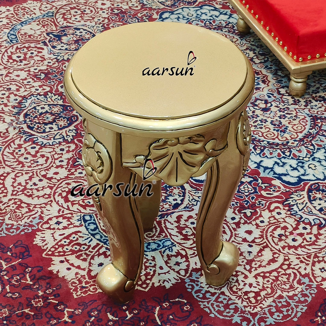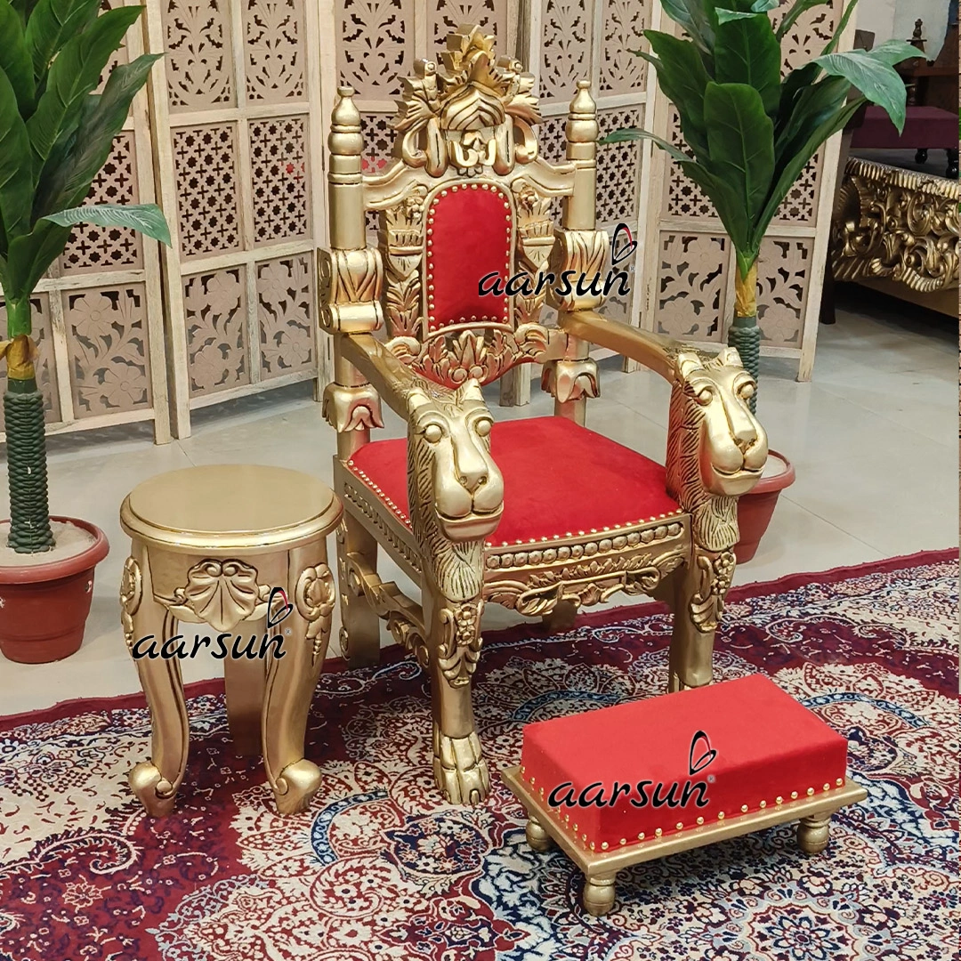Aarsun Wooden Guruji Chair with Stool in Gold Polish