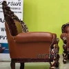 Aarsun brings you a designer Sofa Set in Dual Shade Finish. The sofa set is a classic dilwala design from Saharanpur but with a personalized experience. The living room set is a 5 Seater set 3+1+) with dual finish – Dark Walnut with Golden Highlights , Classic Leather Sofa Set.