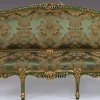Aarsun brings this elegant French style sofa with center table and 2 side tables, it is crafted from solid teak wood, antique gold green deco finishes have been applied to it. This elegant set will make any area look and feel luxurious for your living room.