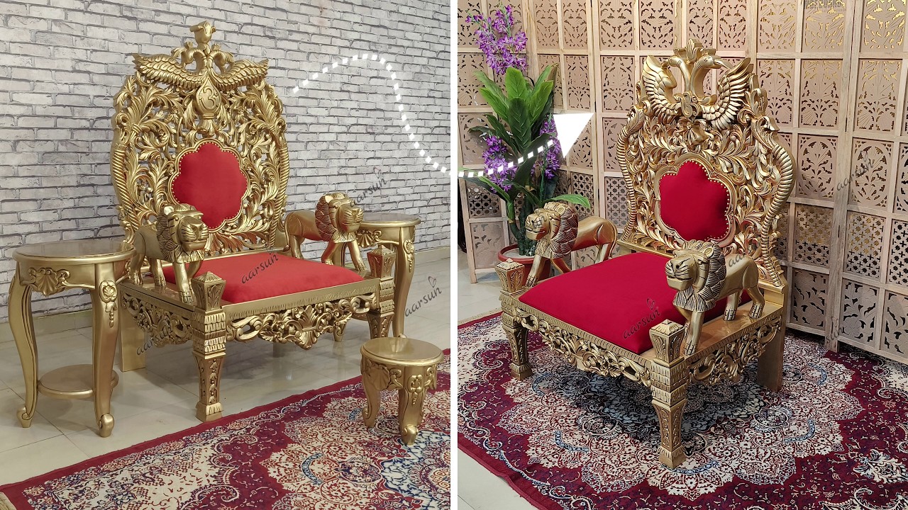 Handcrafted Wooden Guru Singhasan with Antique Gold