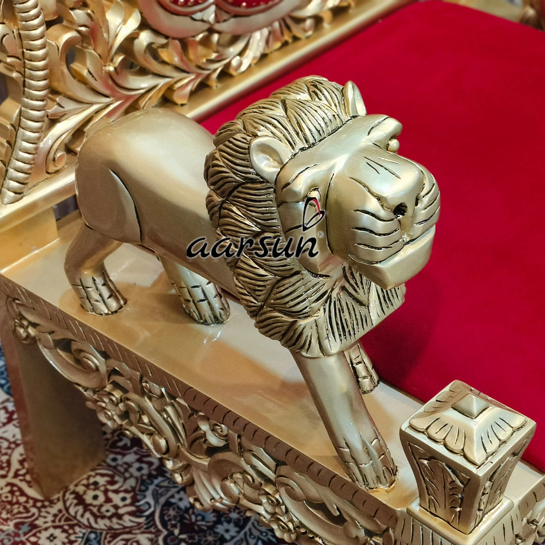 Wooden Singhasan Chair with Lion Arm Design