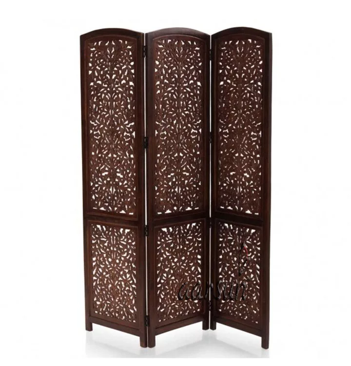 Aarsun Handcrafted Folding Room Divider in Mango Wood & MDF with Hand buffing and finishing. The unit consist of 3 panels and each panel comes in the standard size of 20″width in front and 72″height approx. The Handcrafted Folding Room Divider gives a very traditional and different look to your home. The Handcrafted Folding Room Divider can be placed in a zig-zag position and can be folded easily and you can easily move it from one place to another.