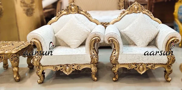 Aarsun – Crafted in India makes each unit as per the clients’ requirements. It can be a 3 seater alone, a 2 seater, and a Single Sofa Chair even- it matters to us. We believe in customer satisfaction along-with keeping the originality intact. The unit can be polished or painted in a variety of shades and colors – teak (as shown in the video), light wood shade, dark walnut shade, Gold, Silver, Black, White, Off White, Off White with Highlights, Copper.