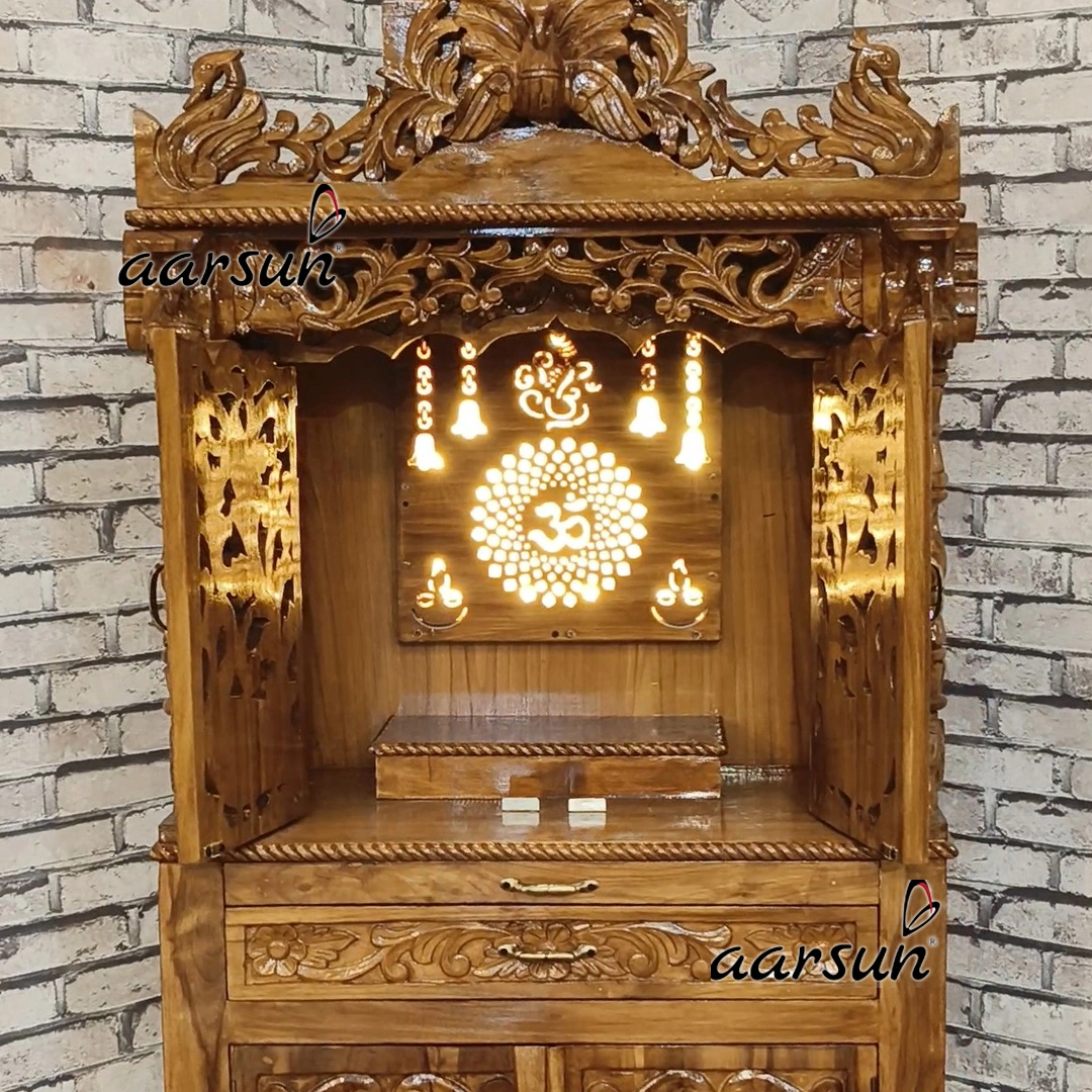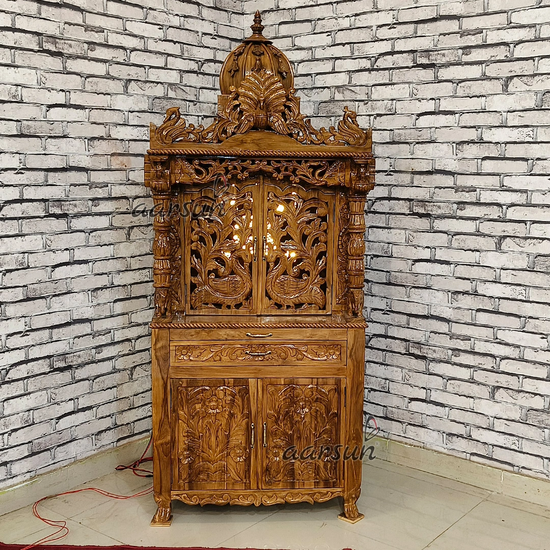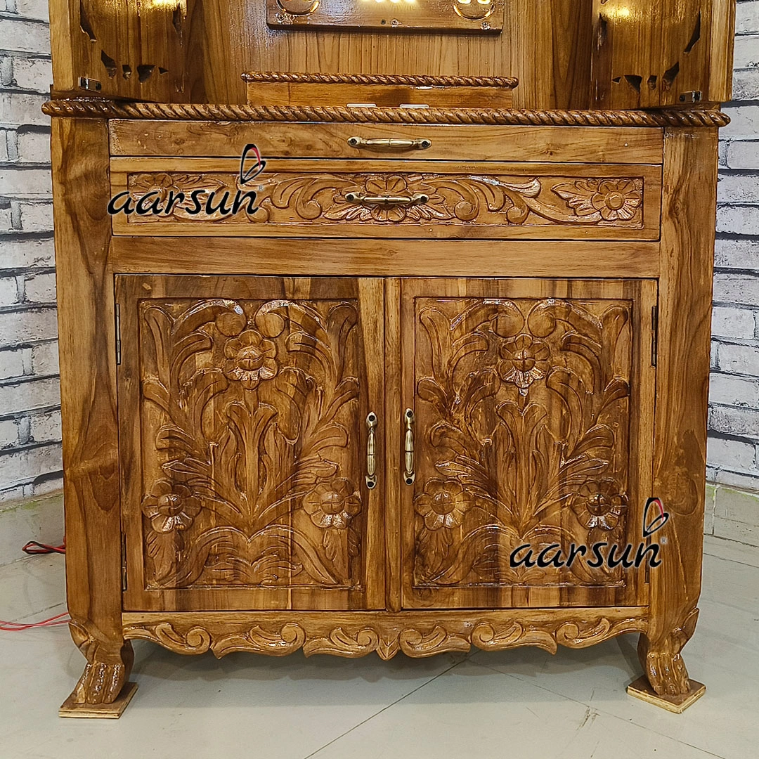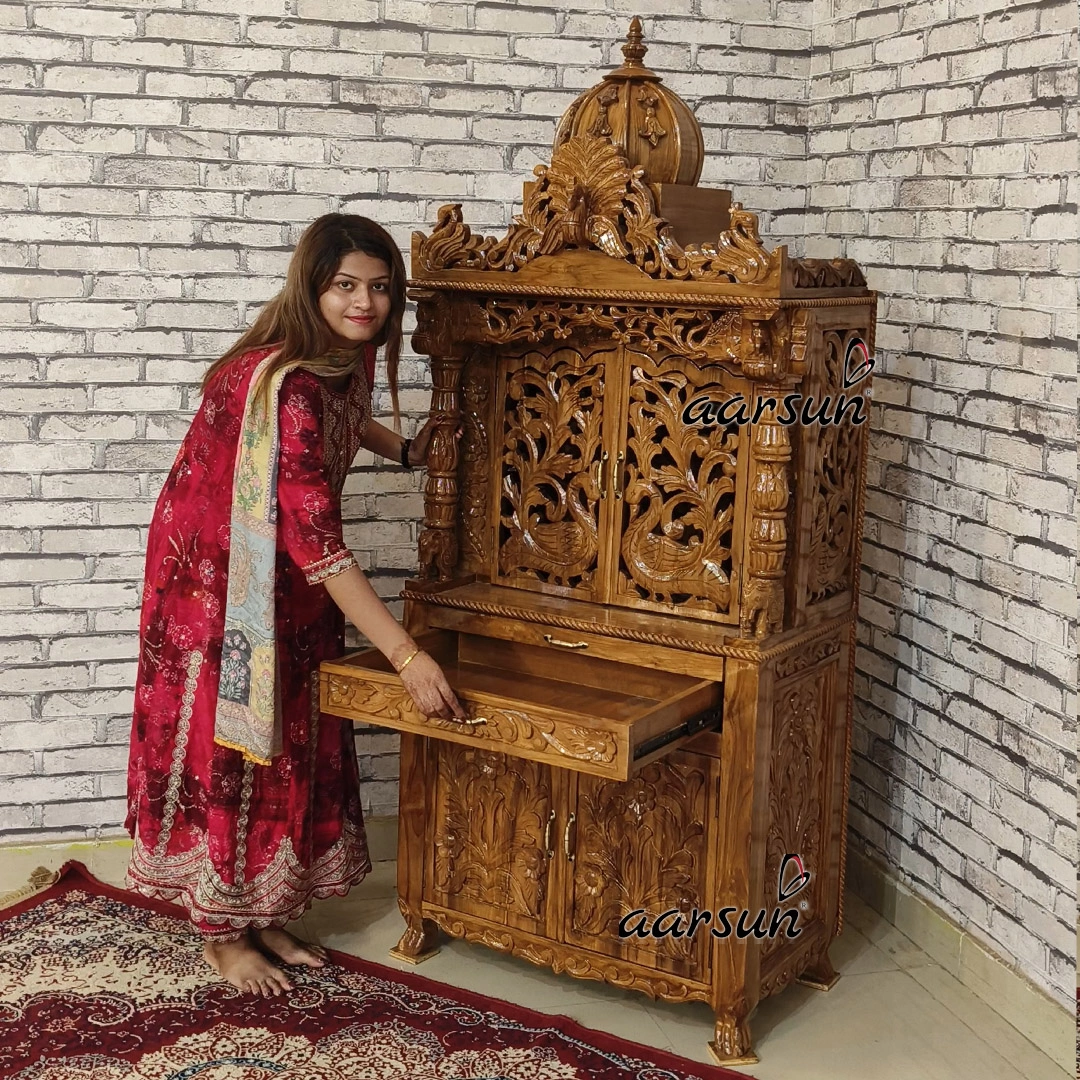Hand Carved Wooden Mandir In Teak Wood MNDR-0024