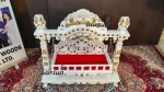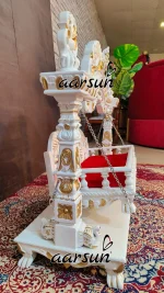 The color red is associated with pride and honor. The Jhula is small in size. The frame of the jhula is supported by two pillars. The jhula swing is hung by brass chains. A very beautiful and well-crafted piece of art that can elevate the pooja room. The back is beautifully carved.