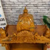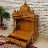 Aarsun presents the latest peacock design wooden temple which is suitable for small spaces. This wooden temple is handcrafted beautifully by our skilled master artisans. The top of the temple has a dome-shaped part which is easily removable. This temple is medium in size with two pull-out drawers for keeping pooja essentials and a bhog tray for offering bhog. This is the most liked temple design because of its size which makes it suitable for small spaces and small to medium size pooja rooms. In Hinduism, the peacock symbolizes beauty, protection, wealth, growth, and new beginnings. Customization is available where you can tell us the size, color, and design you want and we will make it accordingly. This temple is easy to assemble and install.