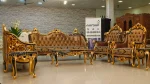 The side tables are also hand carved can be used as coffee tables too. The royal combination of black and gold paint is visible here which provides that luxurious look. The seat is adorned with the beautiful cloth material which uplifts the overall look of the sofa set.