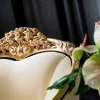 - Floral woodwork polished in Gold shade with comforting upholstery