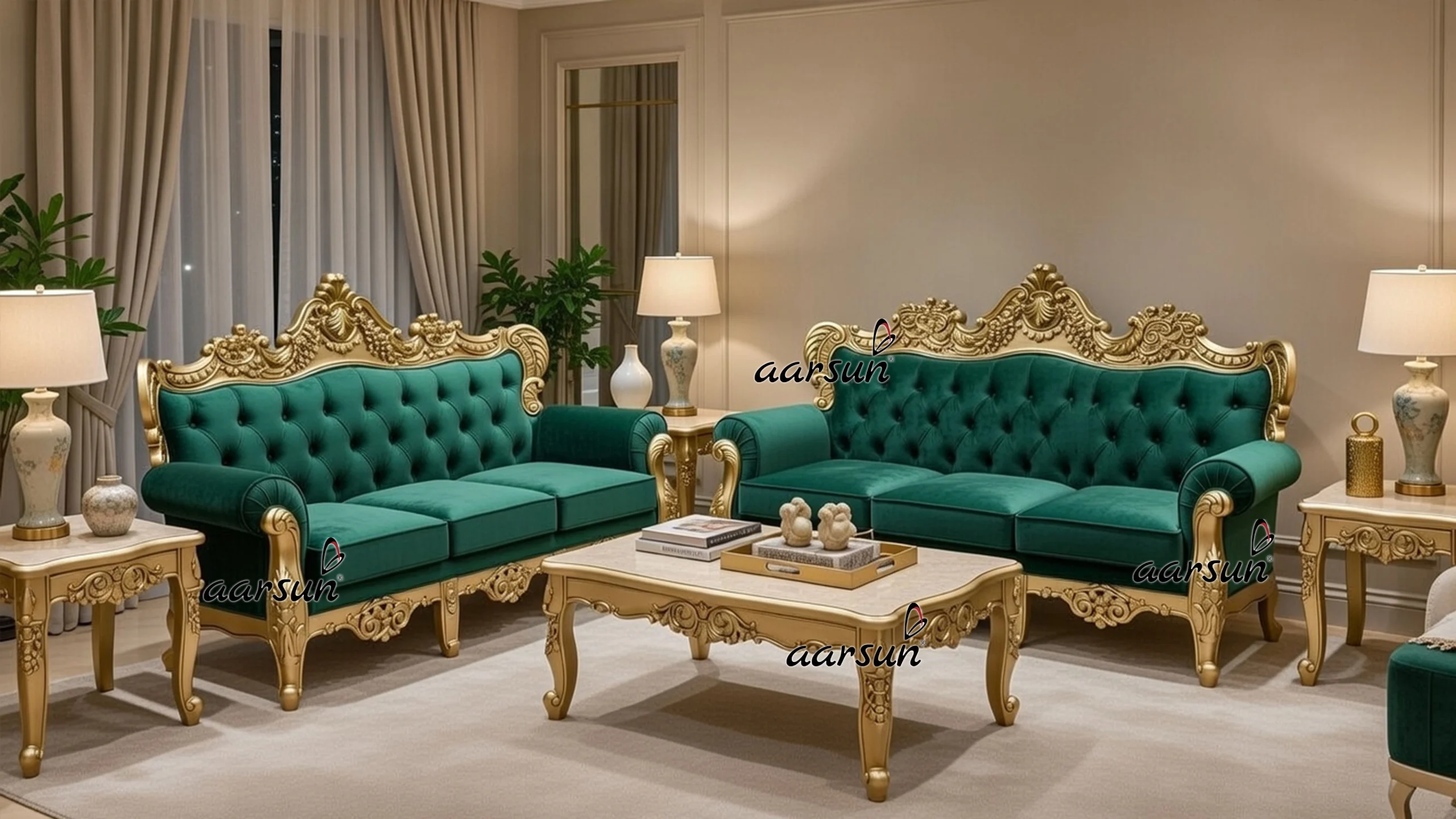 Modern Royal Wooden Sofa Set with Green Velvet and Gold Finish YT-775