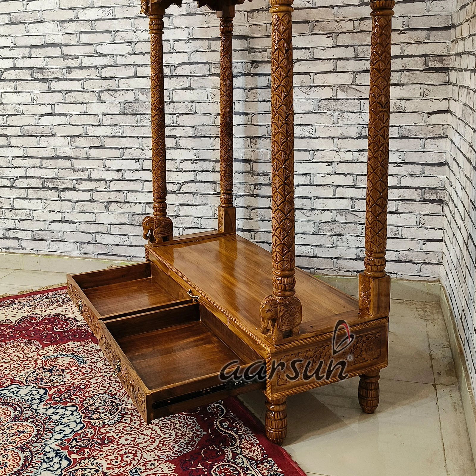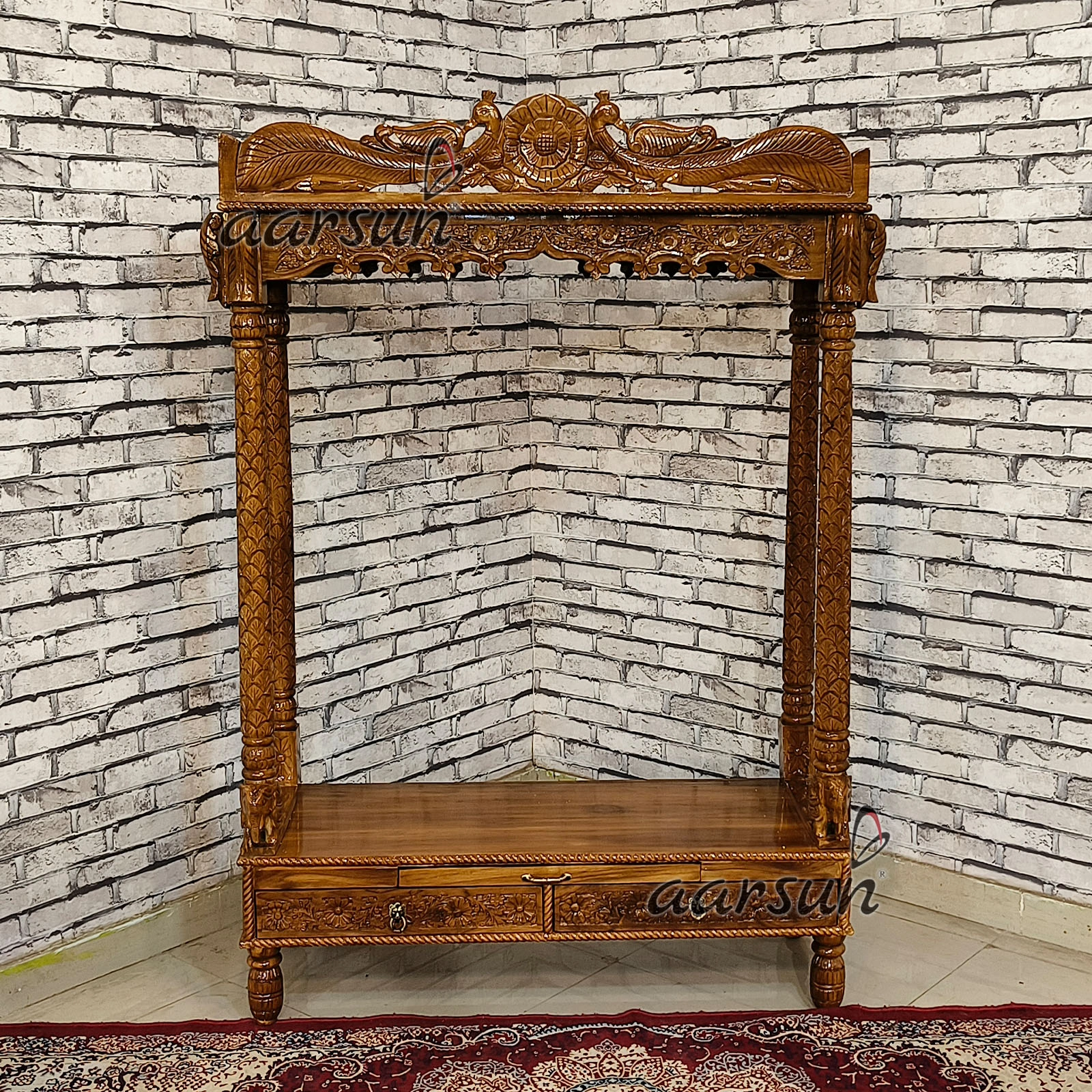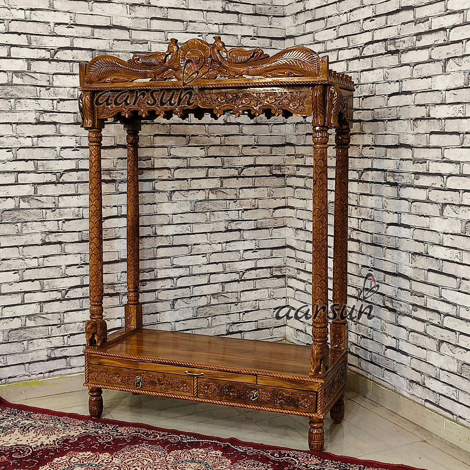 Wood Mandir in Teak Wood for Home MNDR-0129