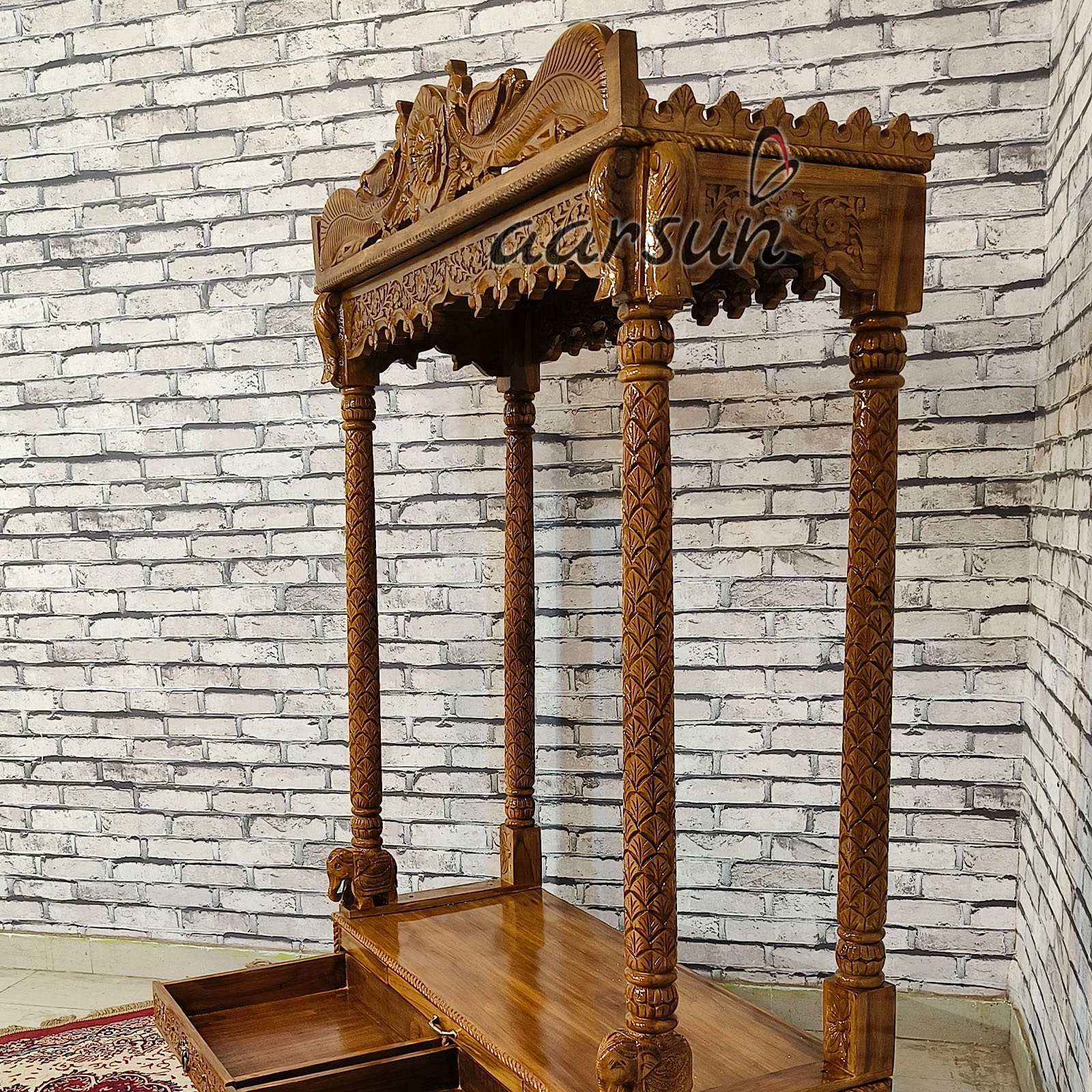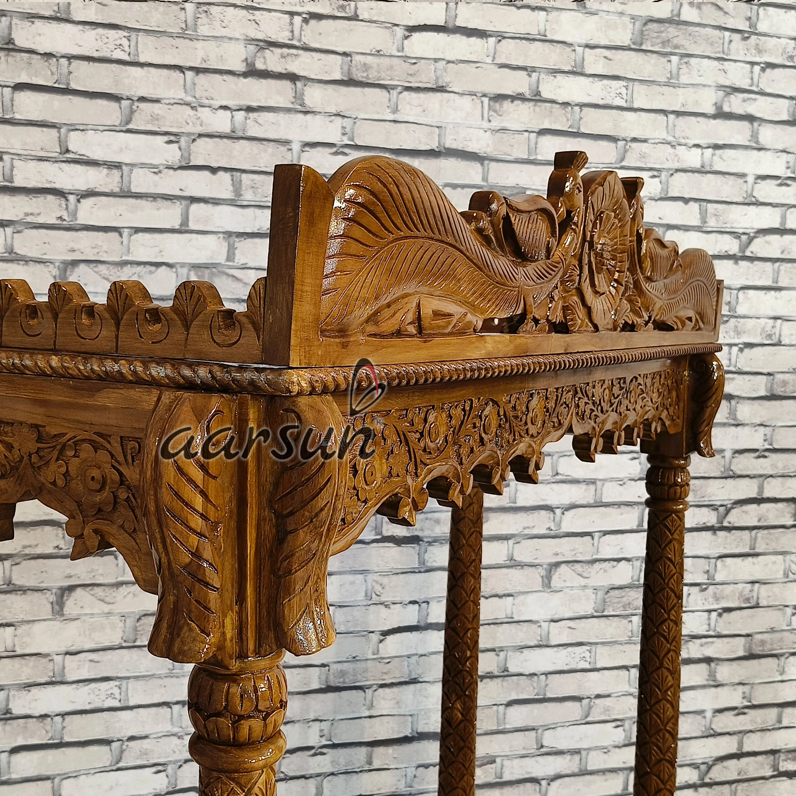 Hand Carved Wooden Mandir In Teak Wood MNDR-0024