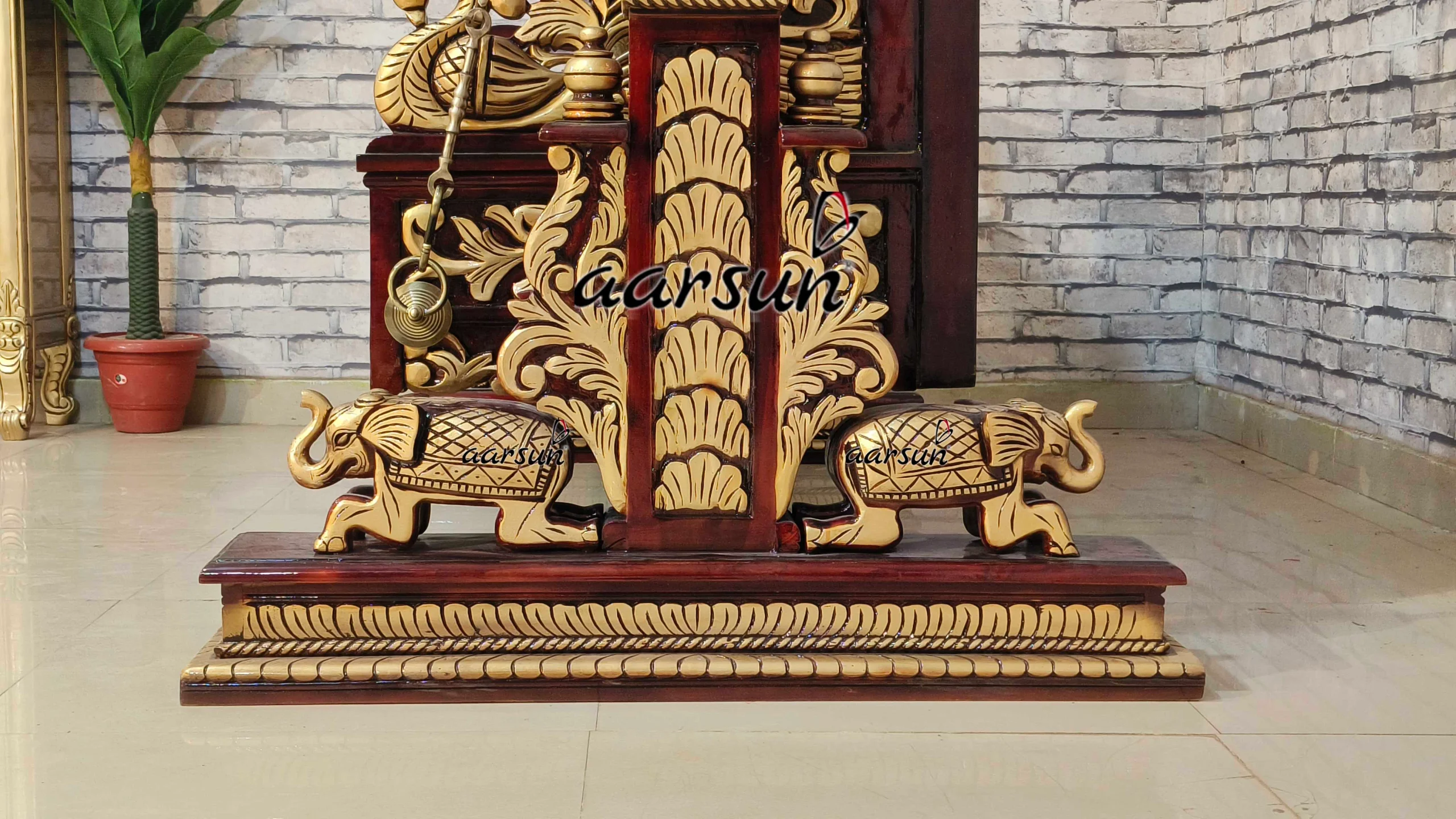 Carved Wooden Swing with Brass Chain