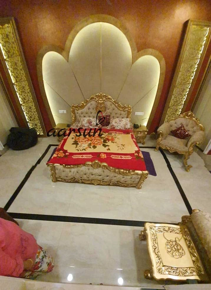 Handcrafted Wooden Bed – Gold Polish BED-0010