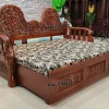 This sofa cum bed is beautifully hand carved and made on solid teak wood ,so that quality and fine carving is not compromised. The fine detailing on the back rest make it even more royal and beautiful.