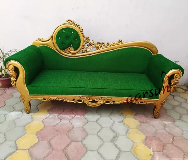 Aarsun brings to you premium design Royal Wooden Couch made by skilled artisans of Aarsun. The wooden couch is made of teak wood with green upholstery. A huge range of traditional handmade furniture and handicrafts famous from top international brand Aarsun with trademark in 35 countries . Best trending designs in custom made unit, designs, size, fabric of client’s choice.
