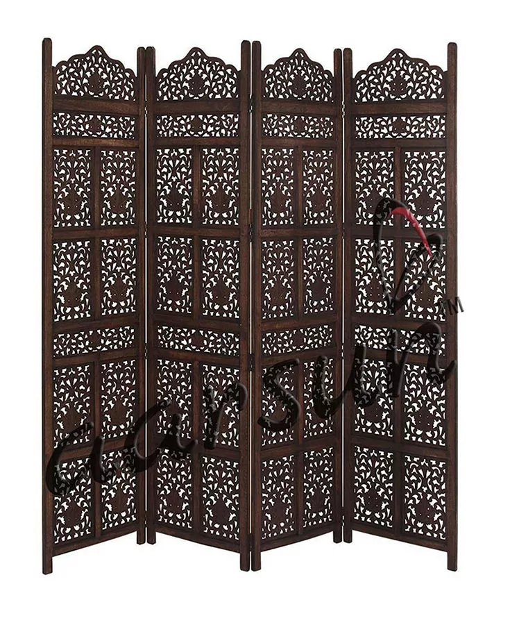 Aarsun Handmade Wooden 4 Panel Partition Screen in fine quality wood and MDF; with fine carving and finishing.