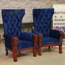 Aarsun presents the latest Wooden Boss Chair with King Wing high-back, perfect for event gatherings, talk shows, and media events. This chair is an amazing masterpiece that will give you a boss-like feeling when you sit on it. This chair is also known as the Boss Chair. The chairs are upholstered in beautiful royal blue fabric. This chair can also be used as a Guru Ji Chair or Singhasan chair for your spiritual leader. The chair has lion-faced handles. With a quilted high back, this chair provides comfort and adds a luxurious charm to your room. This chair is covered in smooth silk Holland fabric. This chair is elegant in look. You can place this chair in your dining hall or big drawing room. This chair is an amazing addition to your living space. You can tell us the size, color of fabric, design and we will make it as you want. This high-back chair has a king-wing back design. With ample sitting space, this chair provides extra comfort to the user.