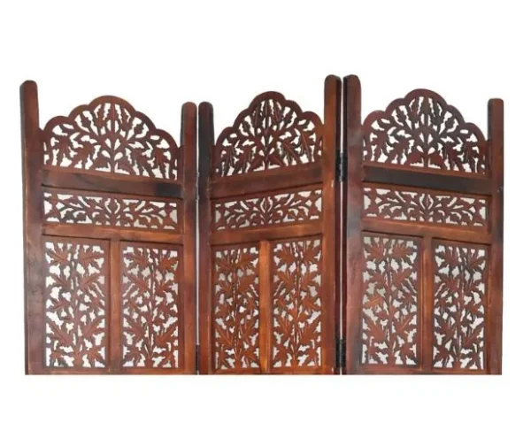 This Handmade Folding Wooden Partition for Hall exclusively launched by Aarsun is made from Mango Wood & MDF with leaf and jaali work that gives it an ethnic look in a matte finish that makes your living room elegant. It has 4 Panels that measure 72 ” Height and 20 ” Width. This stylish partition divides the living room area from the other parts of the house or can divide Puja Space from the other parts of the house. Place an elegant appearance in your living room.