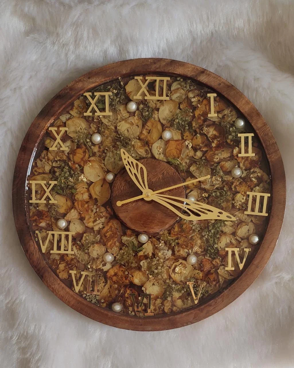 Delicate metal flowers bloom at each hour mark, adding a touch of elegance and nature.